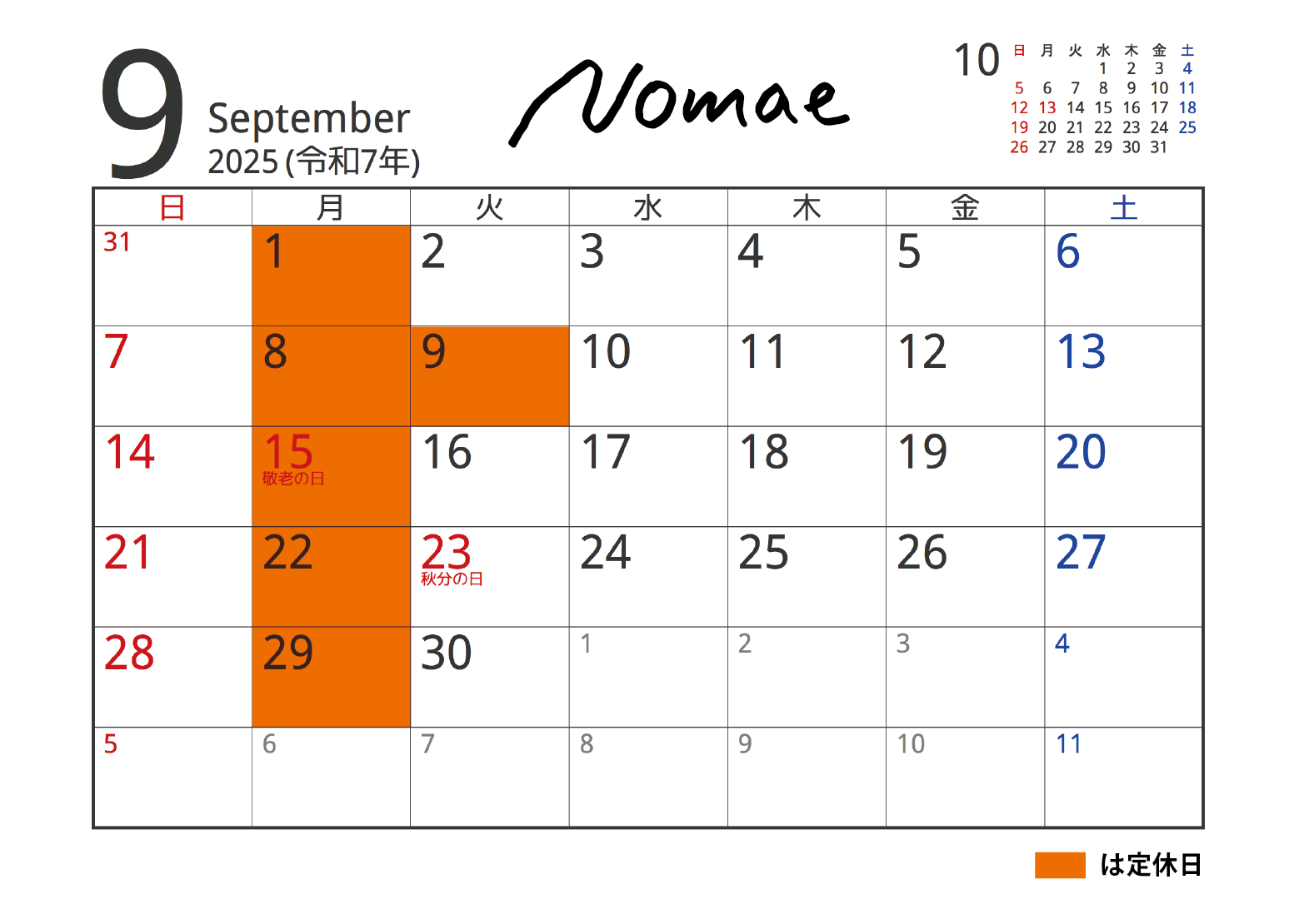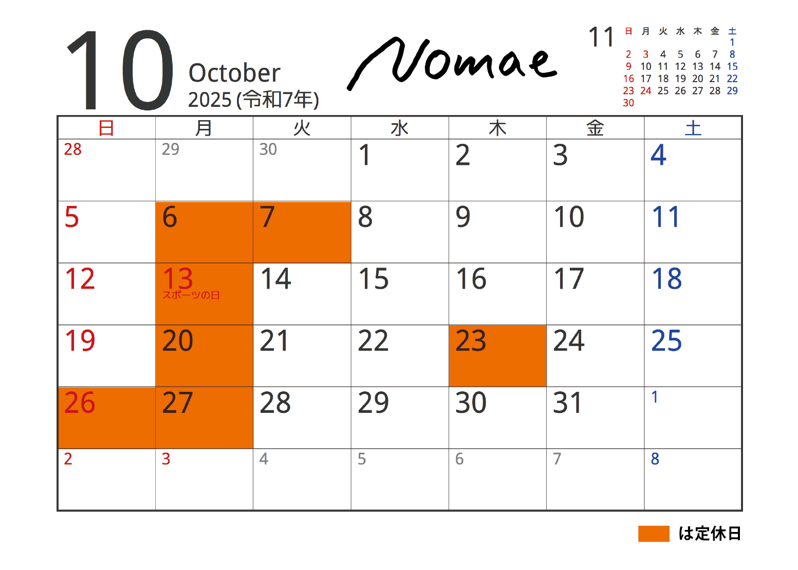 名山堀Nomae12月の営業案内です。